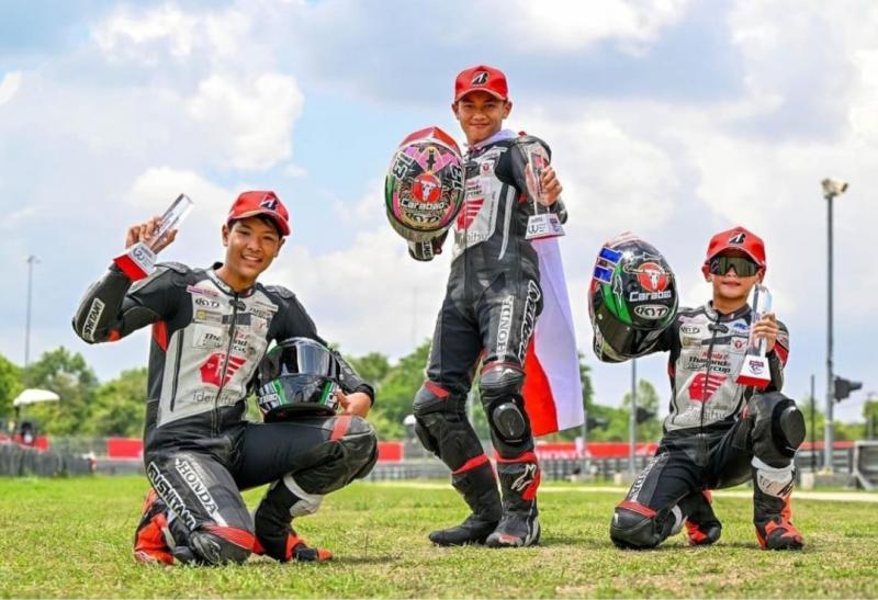 Otostar.id - Pembalap binaaan PT Astra Honda Motor (AHM), Decksa Almer Alfarezel sukses mencetak double podium tertinggi di ajang Thailand Talent Cup (TTC) 2023 seri ketiga di Chang International Circuit, Buriram, Thailand (3-4/6/2023) .